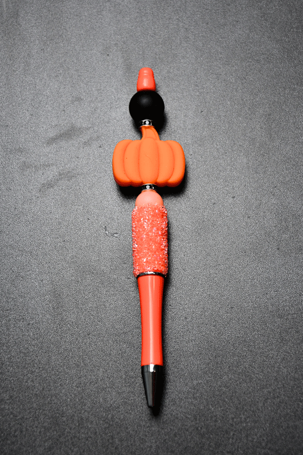 A fun seasonal pumpkin pen with glitter, perfect for fall vibes and festive writing.