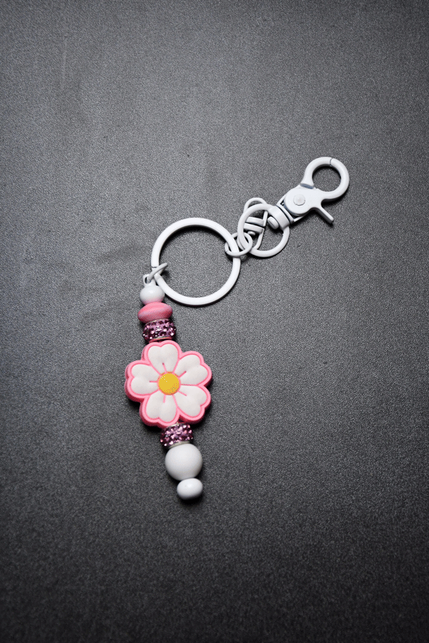 A soft floral keychain with white and pink tones for a cute and feminine look.